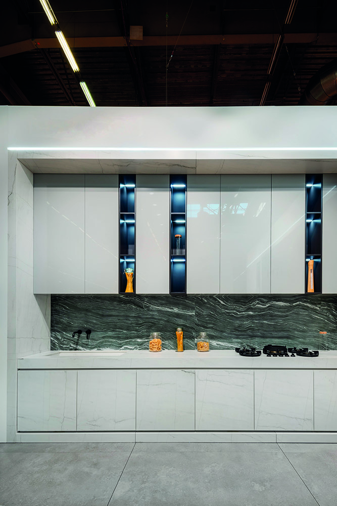 Mont Blanc The pristine slopes of the French-Swiss Alps and the alpine glamour of one of the world’s most prestigious ski resorts, Chamonix, are the inspiration behind the rarefied Mont Blanc. A homage to White Quartzite, one of the most popular stone patterns currently on the market, it has an enrapturing neutral tone, combining a creamy white background with subtle veining in deep black, oxide and ochre hues. Using a special technique, Neolith was able to create an inward relief exactly where the veins are, delivering an original texture which is pleasing to the touch and evokes the soaring beauty of the alpine landscape.