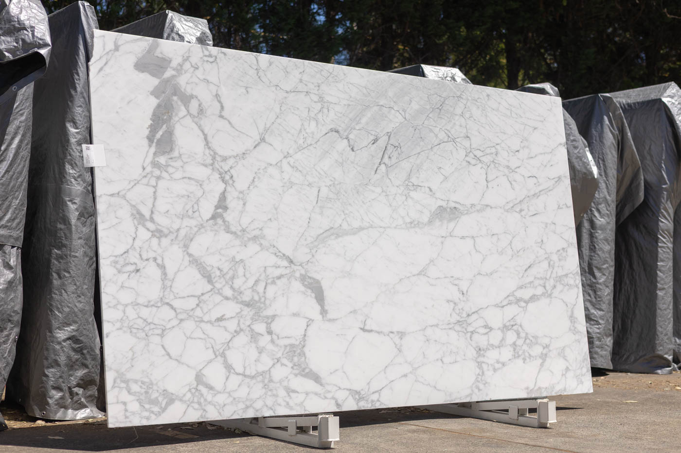 Calacatta Statuario Marble is a luxurious natural stone renowned for its crisp white background and bold, elegant grey veining, offering a striking yet timeless aesthetic. With a honed finish, this slab provides a smooth, matte surface that enhances the stone’s natural beauty while delivering a refined, contemporary touch. Perfect for kitchen benchtops, bathroom vanities, splashbacks, and feature walls, Calacatta Statuario combines sophistication with lasting functionality. Sourced from premium quarries, this marble exemplifies elegance and versatility, making it ideal for both modern and classic interiors. Transform your space with Calacatta Statuario Marble, a statement stone that blends luxury, durability, and enduring style.
