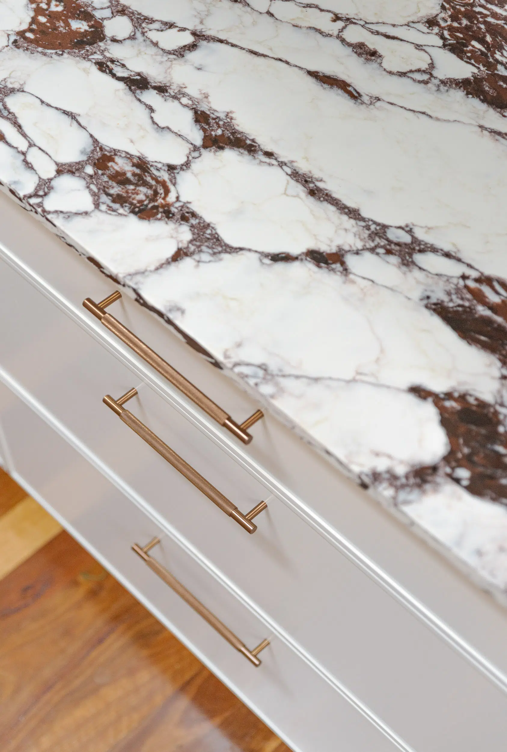 Choosing the right stone is an important part of your kitchen design. After measurements are taken, we guide you through the selection of premium stone options for your benchtops, splashbacks, and other surfaces. Whether you prefer natural stone like marble and granite or engineered stone options such as quartz, we help you find the perfect fit for your style and practical needs. We also consider factors like durability, maintenance, and colour coordination to ensure your selection enhances the overall aesthetic and functionality of your kitchen.