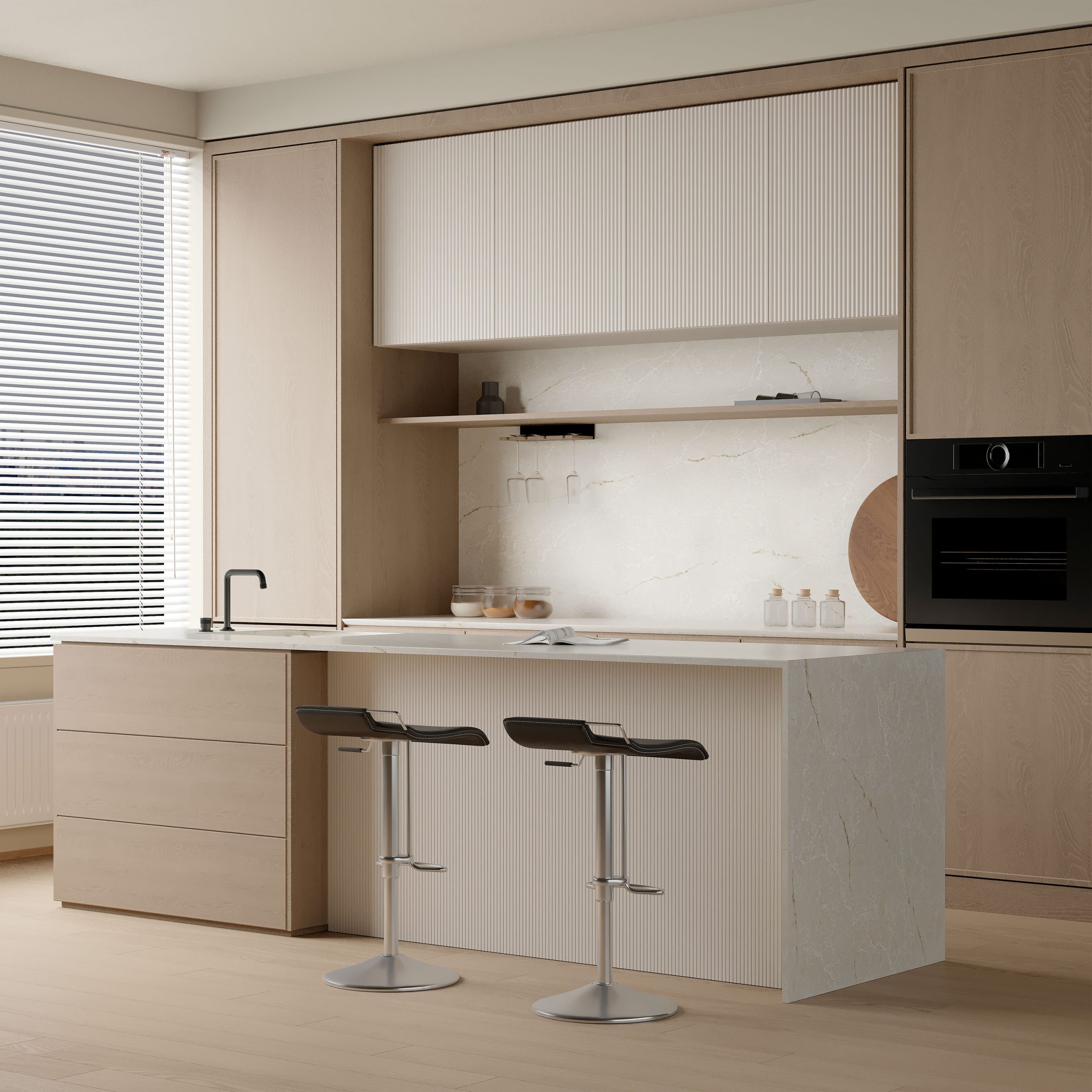 With the fabrication complete, our skilled installation team arrives to bring your kitchen design to life. We handle everything — from the assembly of cabinets to the installation of benchtops, sinks, lighting, and appliances. Our team works efficiently and with great attention to detail, ensuring that all pieces fit together seamlessly. Before we hand over your new kitchen, we perform a thorough quality control inspection, checking every detail from cabinet alignment to appliance functionality. Our commitment to quality ensures that your kitchen is flawless and ready for you to enjoy.
