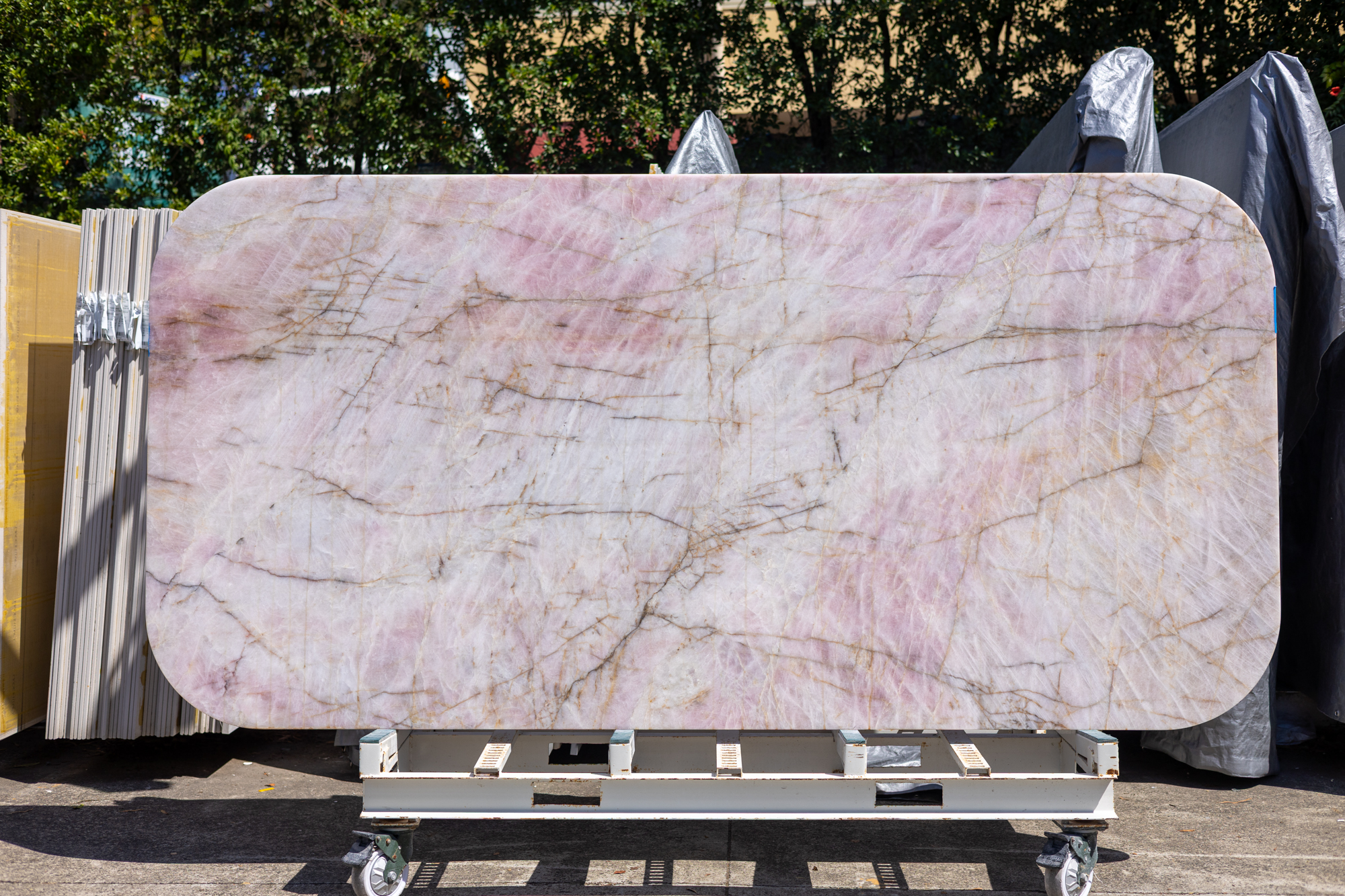 Pink Cristallo Quartzite is an off cut that radiates natural romance with delicate blush tones and subtle crystalline translucence. Ideal for statement quartzite benchtops and luxury interiors, its gentle veining and glass-like texture bring sophistication to kitchens, bathrooms, walls, and feature areas.
