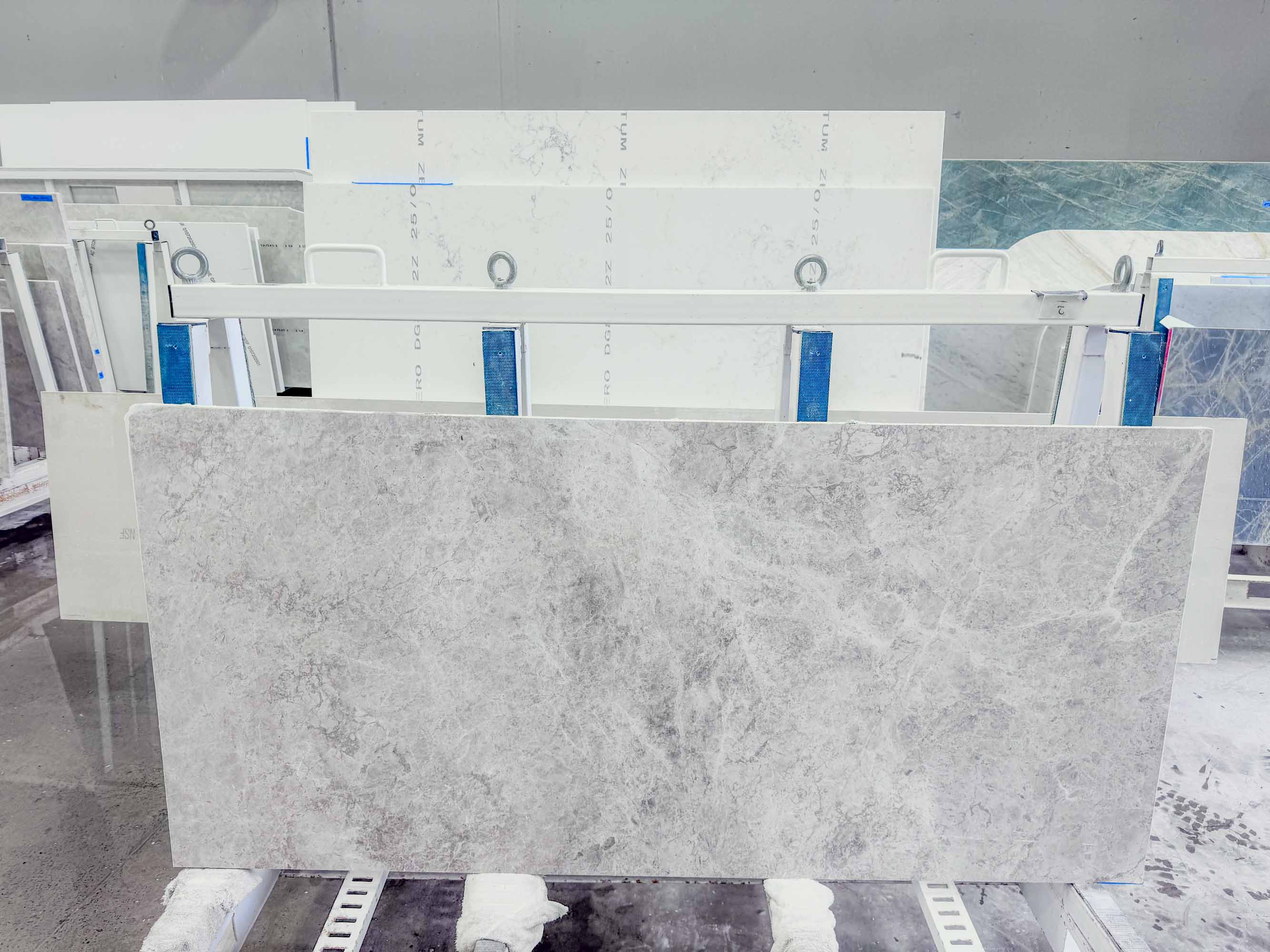 Silver Galaxy Marble Slab features a stunning blend of silvery grey toes with intricate white veining. With a matte texture that highlights the marble’s unique movement, this natural stone is ideal for kitchen benchtops, bathroom vanities, wall panels, and feature architectural elements. Your last chance to own a unique piece. Quantity: 1 slab in stock. **Please, contact us to arrange time to see this End of the Batch slab.**