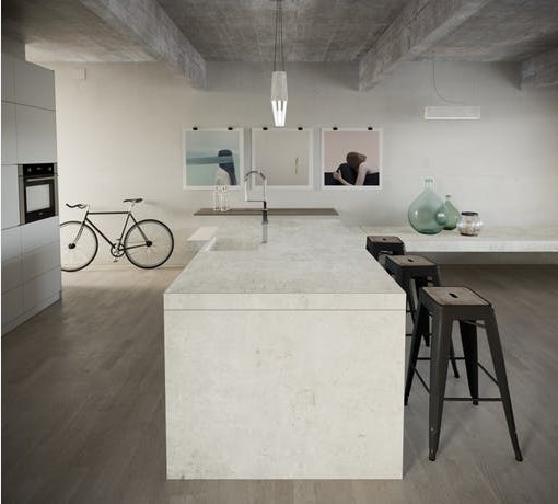 A reinterpretation of conventional cement inspired by industrial aesthetics. Its subtle structure over a white base tone make Lunar a trendy colour. The pattern and background merge perfectly. While other surfaces are stain resistant, Dekton is completely Stain Proof. Even the most stubborn stains like wine, coffee, markers and rust can easily be removed from the surface. Since Dekton has extremely low porosity and contains no resins, it is chemical resistant. Drips or splashes of common household chemicals like bleach, drain cleaners or oven degreasers won’t harm Dekton. With over 5 times the flexural strength of granite, Dekton can be installed in thinner material over greater spans allowing for up to a 12-inch unsupported overhang on benchtops, islands and bartops.