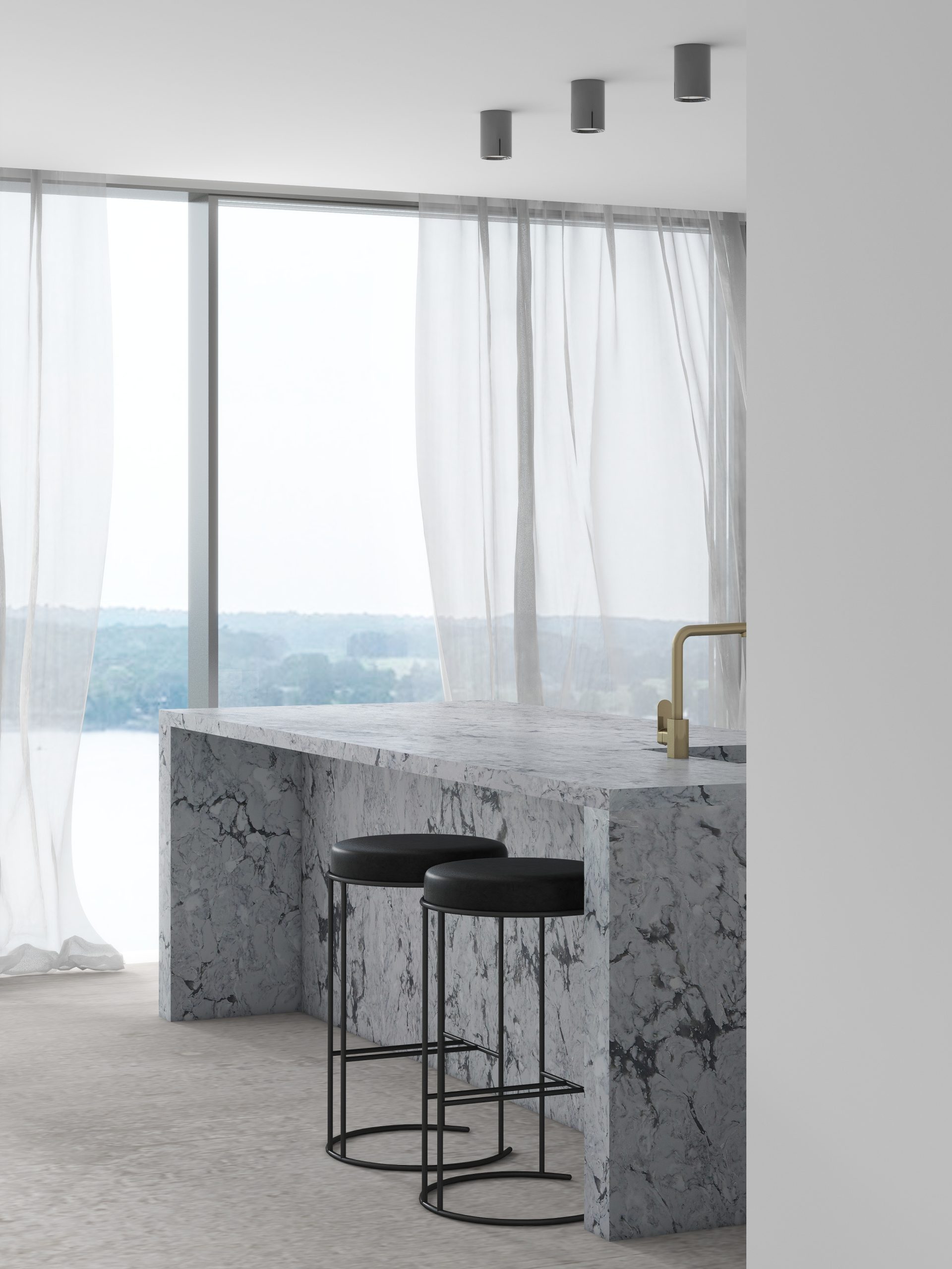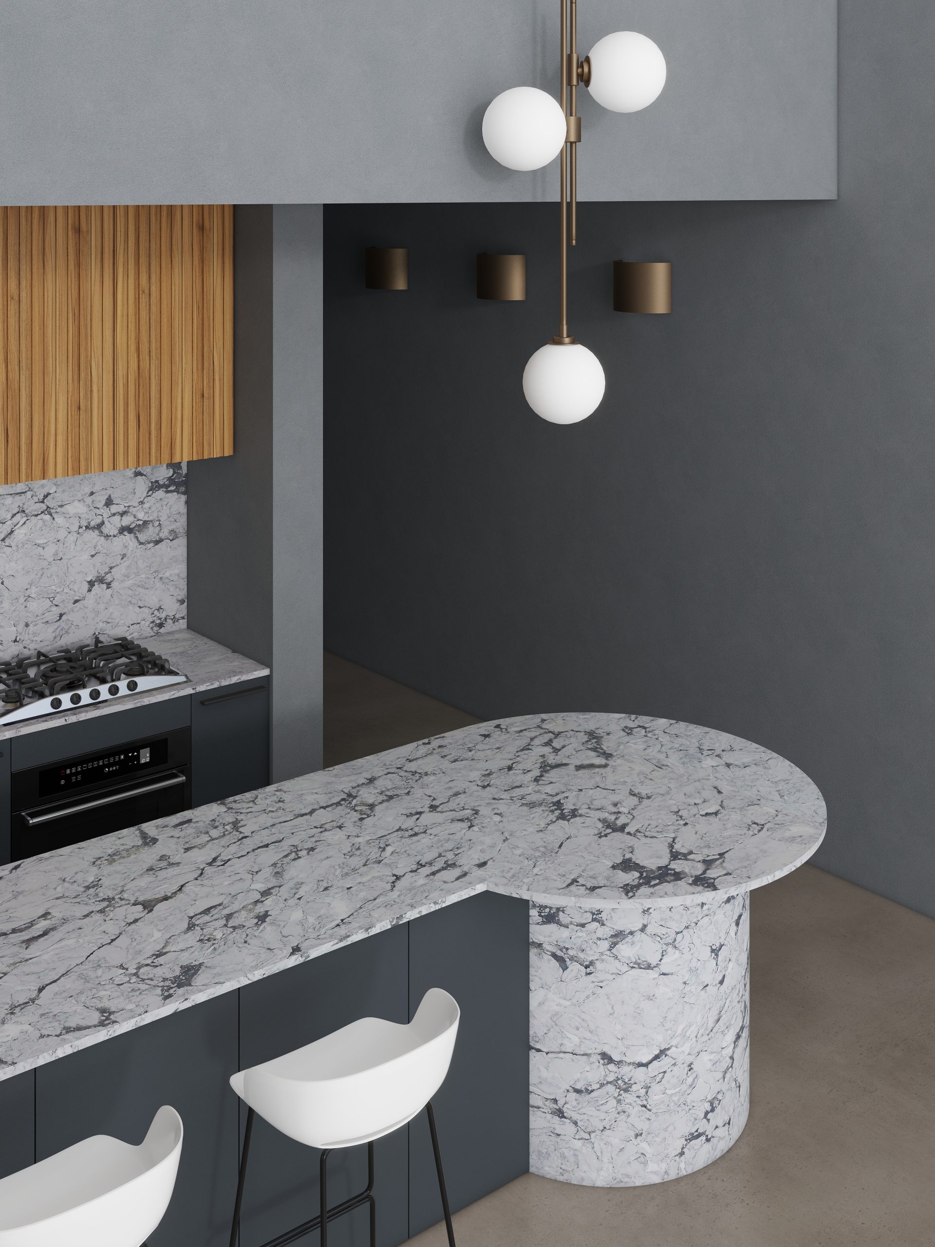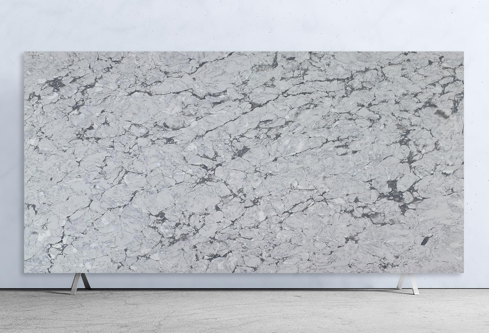 Inspired by Brazilian quartzite Super White. Our Supernova offers a beautiful warm grey background exquisitely mimicking a modern concrete stone surface. The flowing dusk vein patterns, perfectly adds an exclusive and timeless feeling and brings style to any interior.