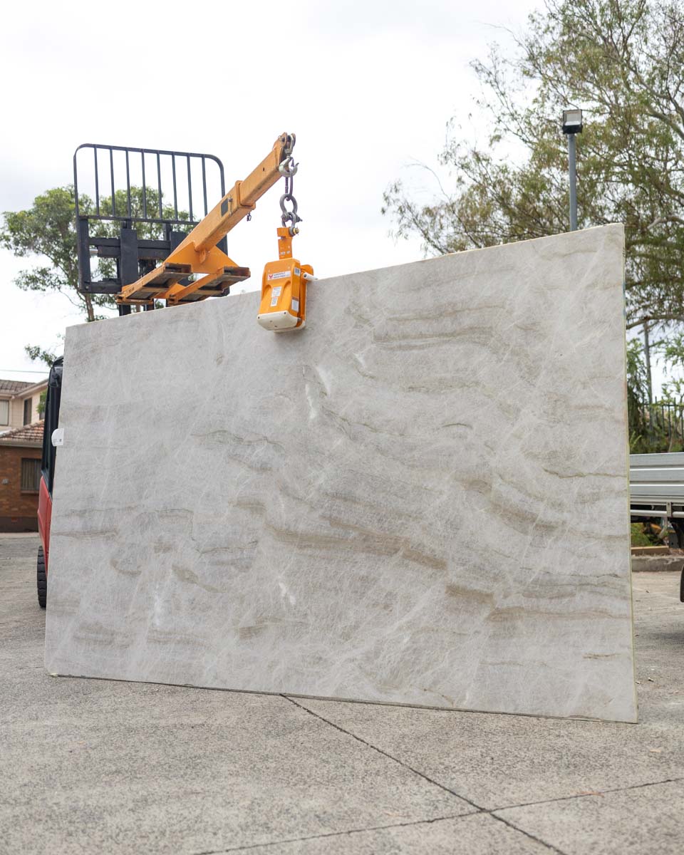 Taj Mahal Quartzite is a premium natural stone known for its creamy white base and soft golden veining, offering timeless elegance and durability. Perfect for kitchen benchtops, splashbacks, bathroom vanities, and feature walls, it combines luxury with effortless functionality. Sourced from Brazil, Taj Mahal Quartzite complements both modern and classic interiors, making it a versatile and stylish choice for any design project. Enhance your space with this durable and on-trend stone, ideal for creating a warm and sophisticated atmosphere.