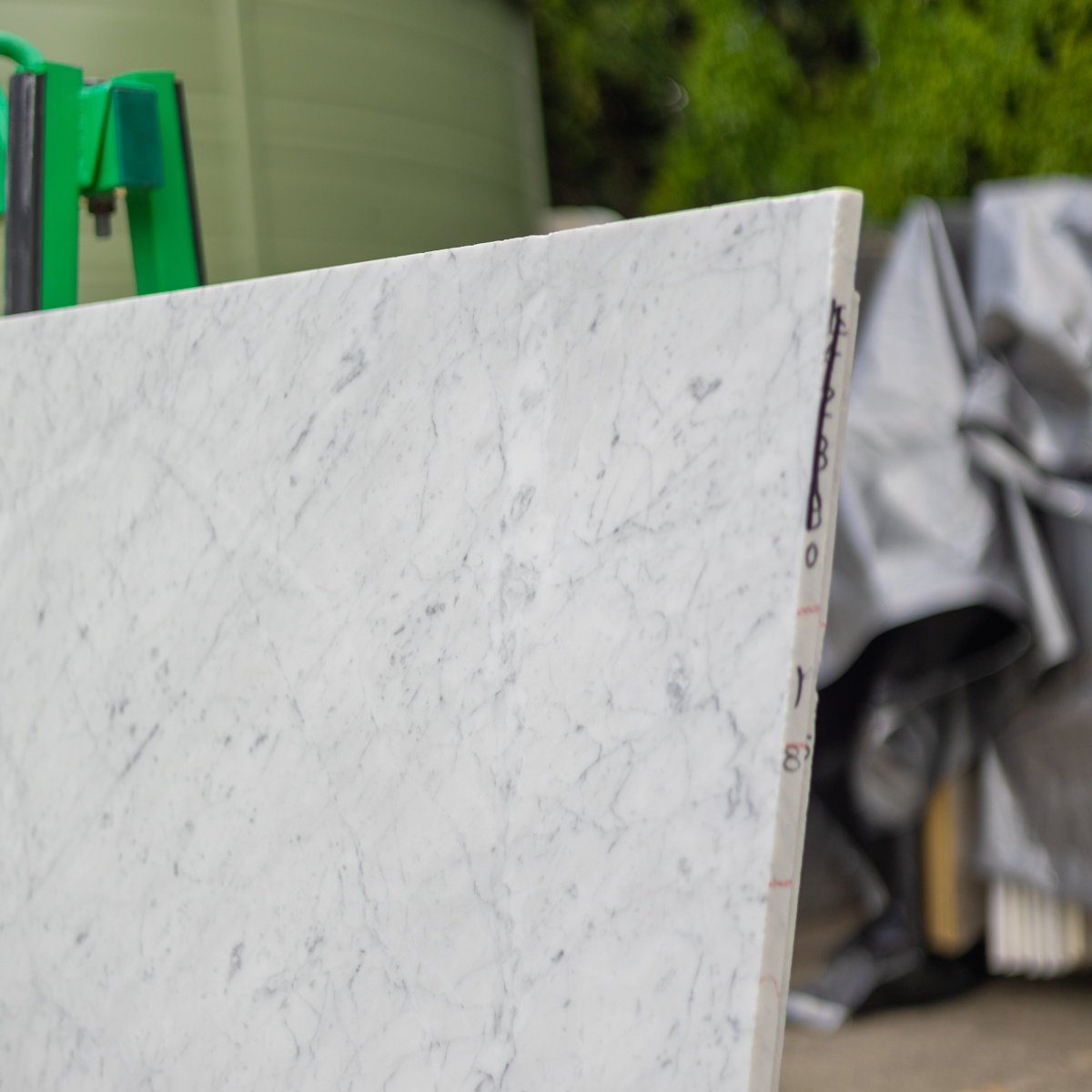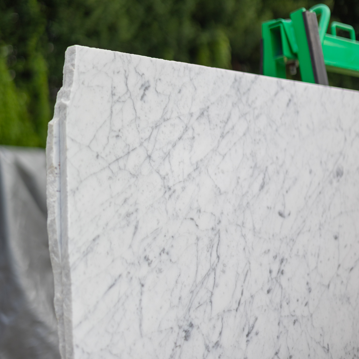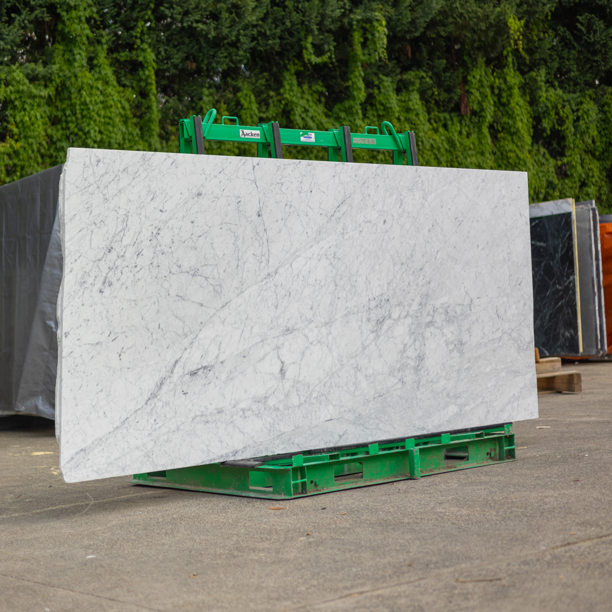 Carrara Marble Slabs: Classic Italian Beauty. These premium slabs, quarried in Carrara, Italy, showcase the iconic elegance of this timeless stone. The signature white or soft blue-grey backdrop, accented by delicate grey veining, makes each slab a unique masterpiece, perfect for creating luxurious interiors. Carrara marble elevates any space, seamlessly integrating into various design styles. Imagine stunning kitchen countertops in a modern house, a spa-like bathroom vanity in a classic traditional design, or elegant flooring that exudes sophistication in a contemporary home. From minimalist to opulent, Carrara adds a touch of refined luxury. Beyond its beauty, Carrara marble is durable and easy to maintain. Its polished surface ensures lasting elegance for years to come. Explore our curated collection of Carrara Marble Slabs. We offer a variety of sizes, thicknesses, and veining patterns to suit your project. Our expert team provides personalized guidance, from selection to custom fabrication and installation. Keywords: Carrara Marble, Marble Slabs, Italian Marble, Marble Countertops, Marble Vanities, Marble Flooring, Kitchen Countertops, Bathroom Vanities, Natural Stone, White Marble, Grey Marble.