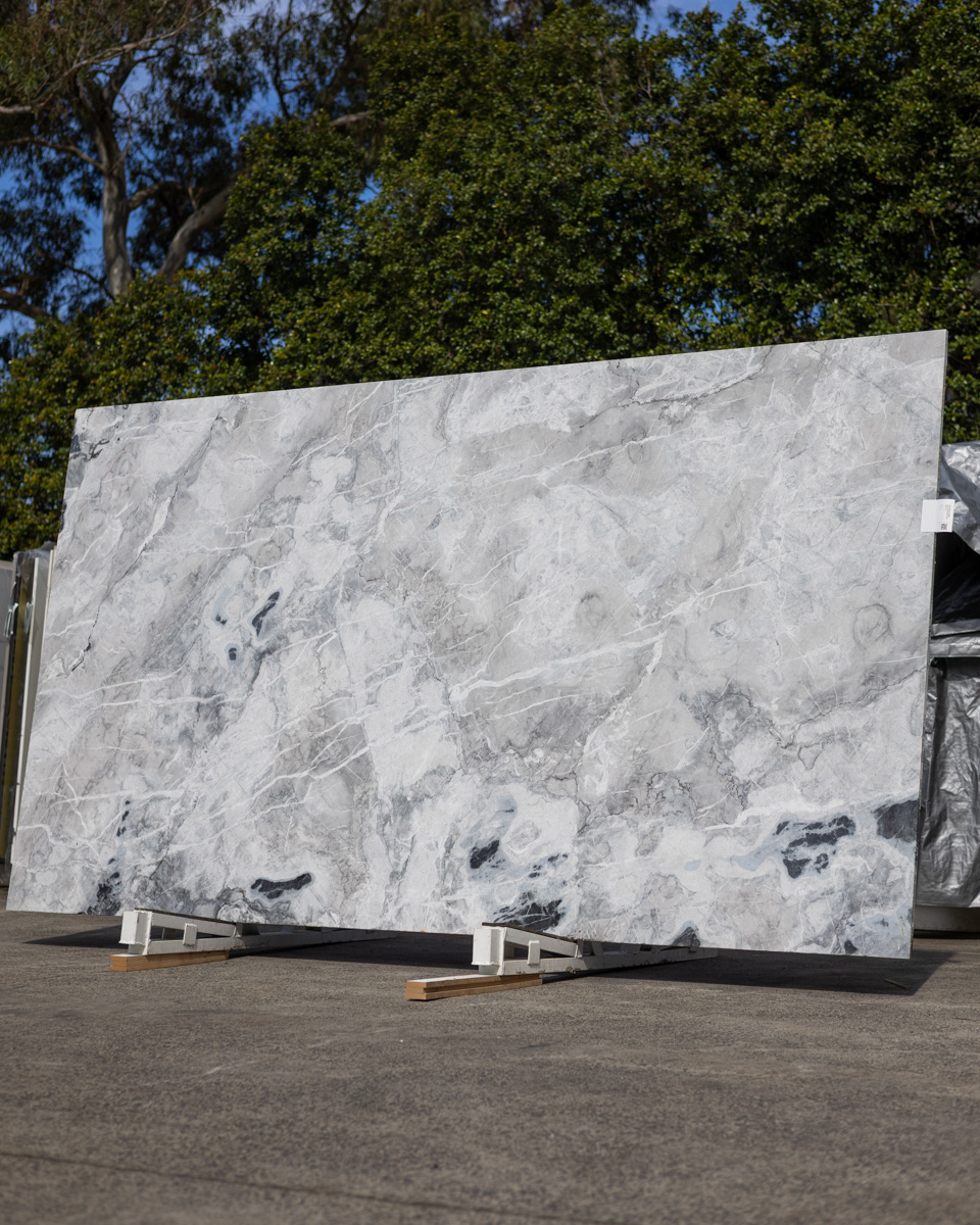 Glacier Quartzite is a striking natural stone featuring a crisp, light grey base with subtle white and silver veining, creating a clean and sophisticated aesthetic. With a honed finish, this slab provides a smooth, matte surface that highlights the stone’s natural patterns while offering durability and long-lasting performance. Perfect for kitchen benchtops, bathroom vanities, splashbacks, and feature walls