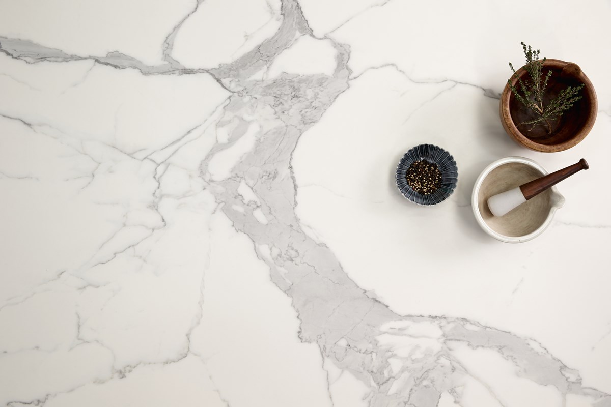 Statuario Matte from QuantumSix+ redefines modern design with its premium porcelain surface. Ideal for kitchen benchtops, splashbacks and bathrooms, this slab is available in a variety of finishes and tones and delivers seamless beauty for any space.