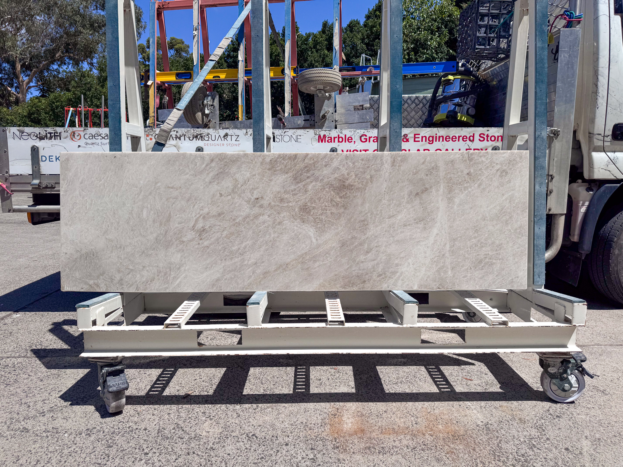 This off cut of Taj Mahal Quartzite embodies graceful texture and elegant composition, which make it a perfect choice for stone benchtops and splashbacks.